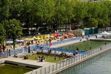 - Le Bassin de la Villette, dans le 19e arrondissement, qui propose des bassins de baignade, des activités nautiques, du beach-volley, et même du baby-foot géant.