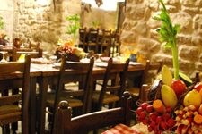 La salle climatisée propose de longues rangées de tables, des paniers de crudités et de charcuterie, des viandes grillées au feu de bois ou en rôtisserie et du vin au tonneau. L’ambiance assurée par le personnel et le barde du restaurant vous permettra de passer un moment unique de convivialité avec vos convives dans un décor digne de nos Ancêtres les Gaulois.